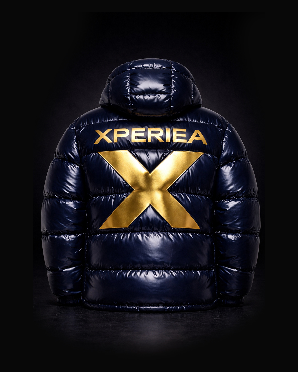 XPERIEA Signature High-Gloss Puffer — Navy & Gold